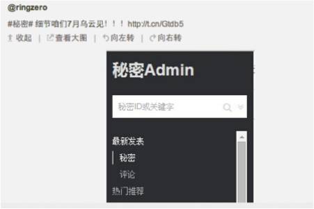 举一个真实的案例, 2014 年的 7 月, 秘密 App 的后台被黑客攻击, 如图 1-34,黑客可以用管理员的身份登陆后台,能查看所有用户的秘密了,秘密已不成秘密,那用户用着还放心吗?(PS:这事秘密官方当时已妥善解决,没有让黑客泄露用户隐私,漏洞已修复,现在还是可以放心用的。)