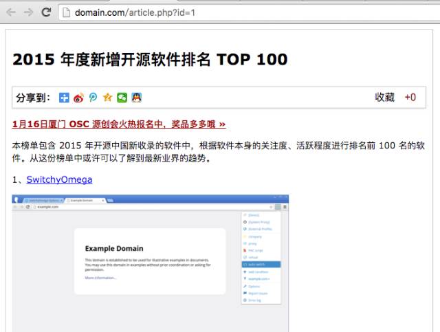 上面SQL语句,字符串“1”会显示在标题的地方, 字符串“2”会显示在文章内容的地方(如图1-36)。