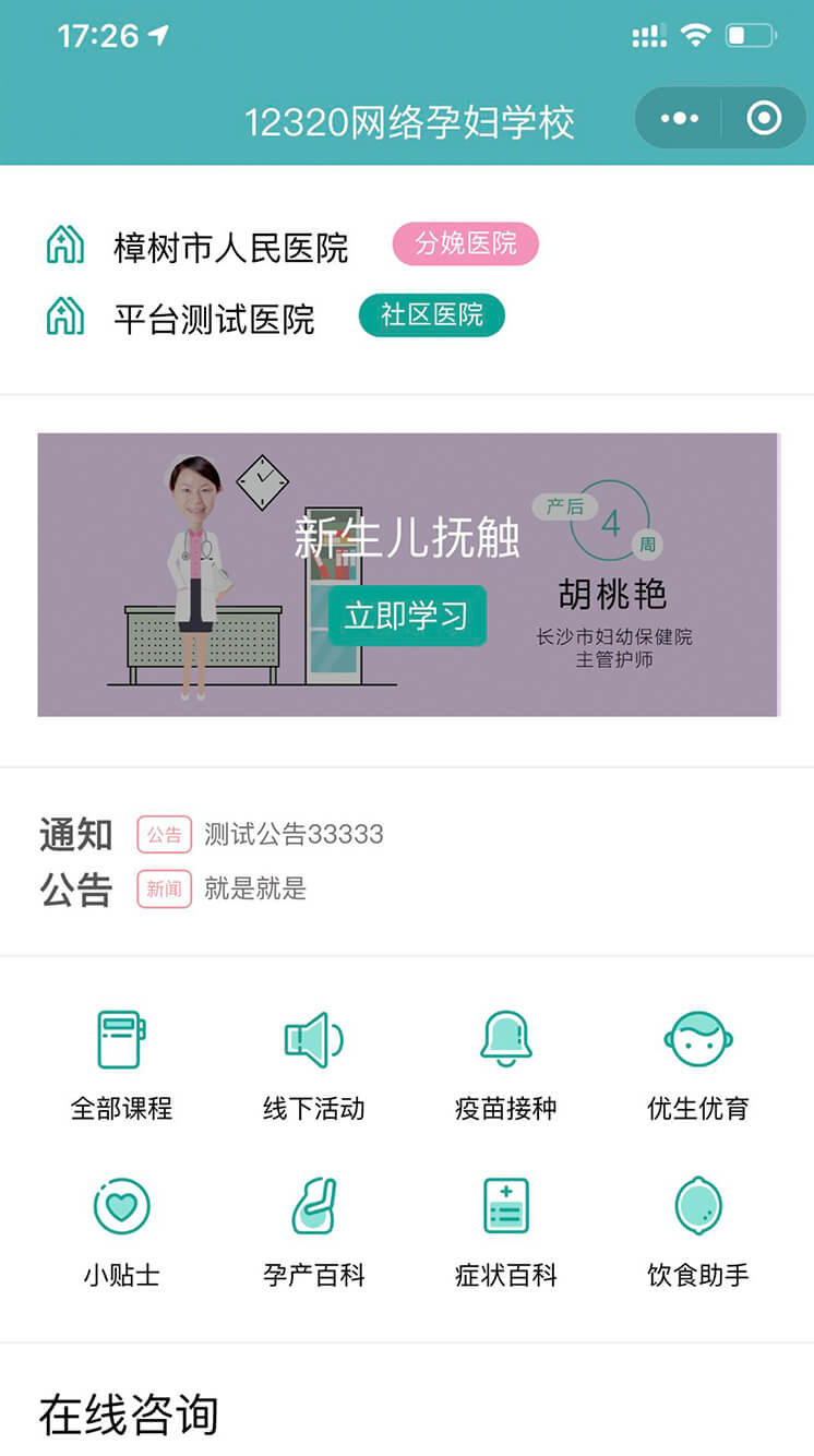 12320网络孕妇学校以12320健康服务热线为依托,运用互联网移动通讯和只能售后机终端技术,与医疗保健机构孕妇学校紧密合作,建立以线上的网络孕妇学校与线下的实体孕妇学校相结合的互联网+健康教育新模式。为孕妇及其家庭服务,为医疗保健机构服务,为妇幼保健事业服务