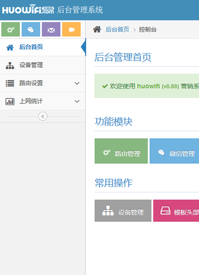 HUOWIFI的路由器系统包含路由器的底层开发以及将路由器获取的用户与微信打通为一体。功能非常强大,当时在国内小有名气,打败大多数同行业竞争对手,当时我们打造的时候,是第一家和极路由深度合作开发的公司。 HUOWIFI的系统体验 d.huowifi.com test test